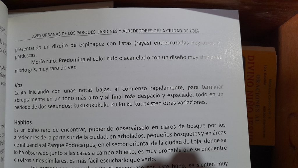 Sucede que efectivamente biólogos investigadores recientemente la describieron como una nueva especie para el Ecuador; pues se trataba de una especie de búho del norte del Perú, el Autillo de Koepcke, osea una especie diferente. Así es como sucedieron las cosas.