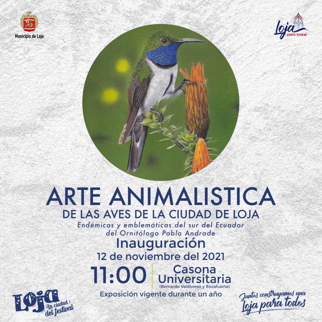 Festival Internacional de las artes vivas Loja 2021. Exposicion pictorica animalistica de Aves.