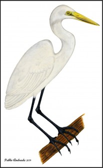 Urban Birds Loja Ecuador, Great Egret, Ardea alba. Illustration by Pablo Andrade